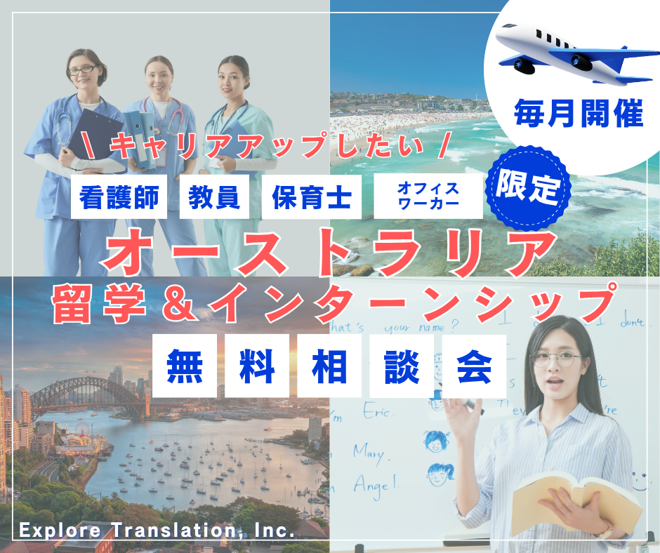 私たち、株式会社エクスプロア通訳翻訳サービス(通称ET)は、そんなオーストラリア・シドニーにある語学学校と直接提携しています。またオーストラリア現地での在住経験の長いバイリンガルのスタッフがおり、ETの代表取締役であるSaoriは、この語学学校の学長が当時働いていた学校に実際に通っていたというご縁があります。