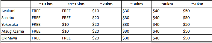 *Distances are measured from the main gate of each military base to requested location for Iwakuni, Sasebo and Okinawa.