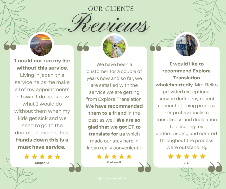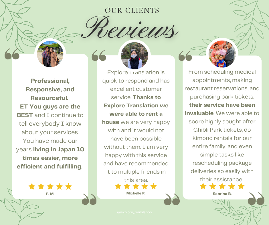 Explore Translation, Inc. has been proudly supporting SOFA families and other expats in Japan for over 9 years. Our experienced bilingual team provides seamless Japanese-English translation and interpretation for: